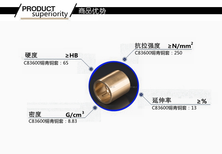 本產(chǎn)品實行ASTM標(biāo)準(zhǔn)………………………………………………… 根據(jù)客戶產(chǎn)品需求我們提供的鑄造方式有:離心鑄造,連續(xù)鑄造和金屬型鑄造。…………………………………………………………… 牌號C83600合金銅化學(xué)成分:Cu84-86 Sn4-6 Pb4-6 Zn4-6 Fe0.3 Al0.005 Si0.005 Ni1 Sb0.25 P1.5 S0.08…………對比國內(nèi)相近牌號:ZCuSn5Pb5Zn5