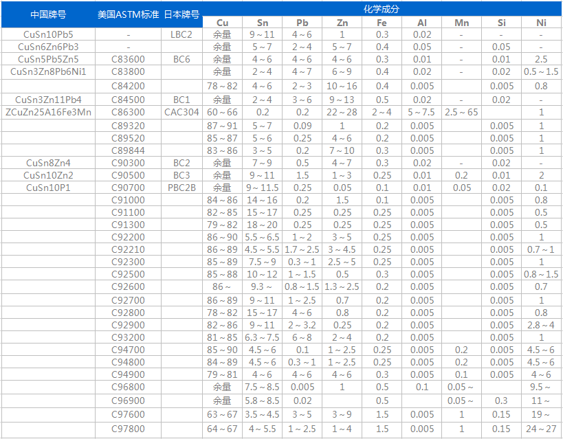 BC6(CAC406)鑄造錫青銅銅合金耐磨性和耐蝕性好,易加工,鑄造性能和氣密性較好。ZCuSn5Pb5Zn5鑄造銅合金用于在較高負荷,中等滑動速度下工作的耐磨耐腐蝕零件,如軸瓦、襯套、缸套、活塞離合器、泵件壓蓋以及蝸輪等。對應美國牌號C83600和國標ZCuSn5Pb5Zn5。