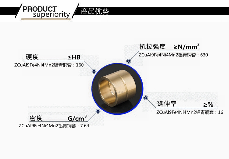 本產(chǎn)品實(shí)行GB標(biāo)準(zhǔn)………………………………………………… 根據(jù)客戶產(chǎn)品需求我們提供的鑄造方式有:離心鑄造,連續(xù)鑄造和金屬型鑄造。…………………………………………………………… 牌號(hào)ZCuAl9Fe4Ni4Mn2合金銅化學(xué)成分:Cu余量 Pb0.02 Fe4-5 Al8.5-10 Mn0.8-2.5 Si0.15 Ni4-5 C0.1