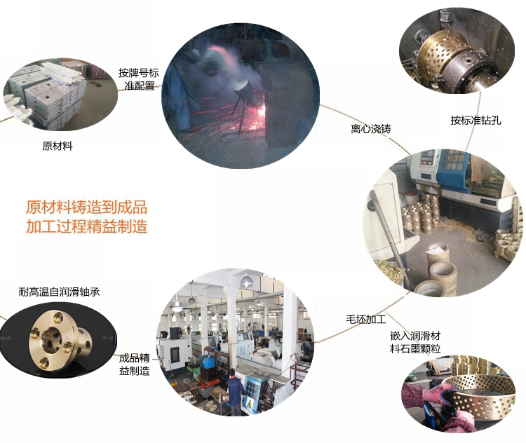 我們根據(jù)使用工況和環(huán)境要求,選擇不同的銅合金材料,如大氣環(huán)境選擇高力黃銅為基體;水環(huán)境下一般選用錫青銅為基體;高溫或海水腐蝕等工作環(huán)境選用鋁青銅為基體;其他特殊工況環(huán)境選擇相應(yīng)的銅合金材料為基體;然后根據(jù)產(chǎn)品的實際受力情況和運(yùn)動方式,確定潤滑劑的排布方式和密度,以求達(dá)到最佳使用效果和壽命。 銅石墨軸承使用廣泛,如冶金機(jī)械,工程機(jī)械,注塑機(jī)械,水利機(jī)械,海工裝備,風(fēng)電設(shè)備,模具行業(yè),印刷包裝機(jī)械,礦山設(shè)備,石油化工機(jī)械,各種輕工機(jī)械等等。