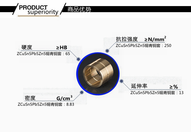 本產(chǎn)品實行GB/1176-1984標準……………………………………… 根據(jù)客戶產(chǎn)品需求我們提供的鑄造方式有:離心鑄造,連續(xù)鑄造和金屬型鑄造。…………………………………………………………… 牌號ZCuSn5Pb5Zn5合金銅化學成分:Cu余量 Sn4-6 Pb4-6 Zn4-6 Fe0.3 Al0.01 Si0.01 Ni2.5 Sb0.25 P0.05 S0.1