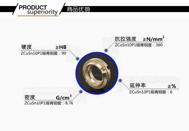 本產品實行GB/1176-1984標準……………………………………… 根據客戶產品需求我們提供的鑄造方式有:離心鑄造,連續(xù)鑄造和金屬型鑄造。…………………………………………………………… 牌號ZCuSn10P1合金銅化學成分:Cu余量 Sn9-11.5 Pb0.25 Zn0.05 Fe0.1 Al0.01 Mn0.05 Si0.02 Ni0.1 Sb0.05 P0.5-1 S0.05
