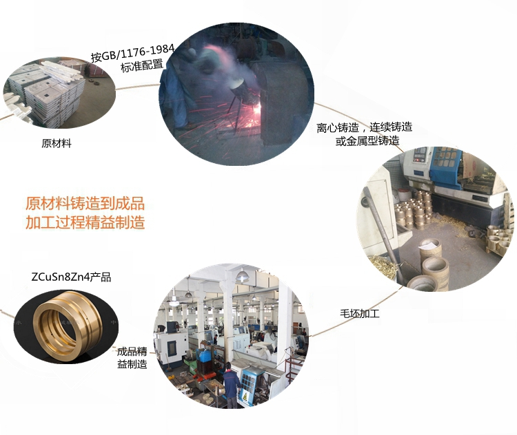 本產(chǎn)品實(shí)行GB/1176-1984標(biāo)準(zhǔn)……………………………………… 根據(jù)客戶產(chǎn)品需求我們提供的鑄造方式有:離心鑄造,連續(xù)鑄造和金屬型鑄造。…………………………………………………………… 牌號(hào)ZCuSn8Zn4合金銅化學(xué)成分:Cu余量 Sn7-9 Pb0.5 Zn4-7 Fe0.3 Al0.02 Si0.02 Sb0.5 S0.05
