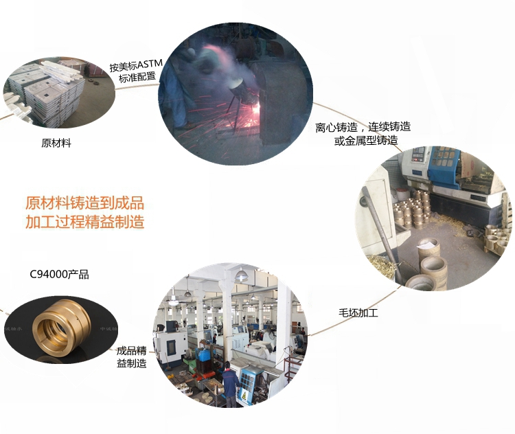 本產(chǎn)品實(shí)行ASTM標(biāo)準(zhǔn)………………………………………………… 根據(jù)客戶產(chǎn)品需求我們提供的鑄造方式有:離心鑄造,連續(xù)鑄造和金屬型鑄造。…………………………………………………………… 牌號(hào)C94000合金銅化學(xué)成分:Cu69-72 Sn12-14 Pb14-16 Zn0.5 Fe0.25 Al0.005 Si0.005 Ni0.5-1 Sb0.5 P1.5 S0.08